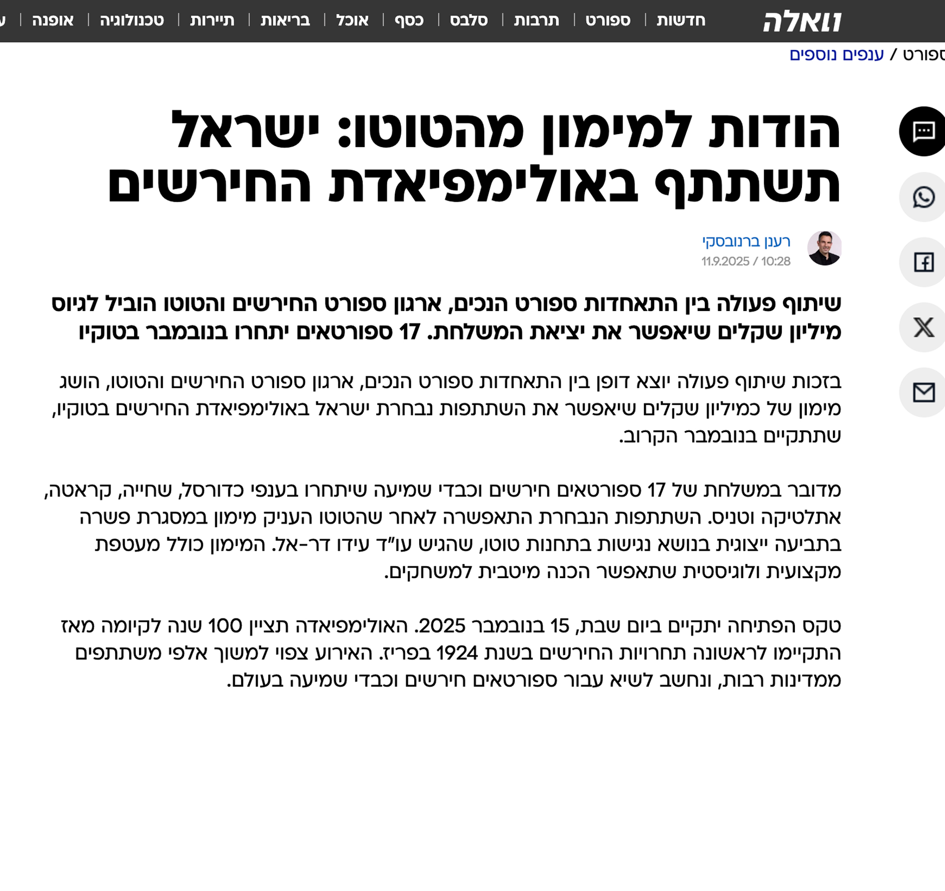 ספורטאים וספורטאיות, מאמנים ומאמנותוכל חברי המשלחת היקרים לאולימפיאדת החירשים בטוקיו 2025, בשם מינהל הספורט ומשרד התרבות והספורט, וערב צאתכם למשחקי…